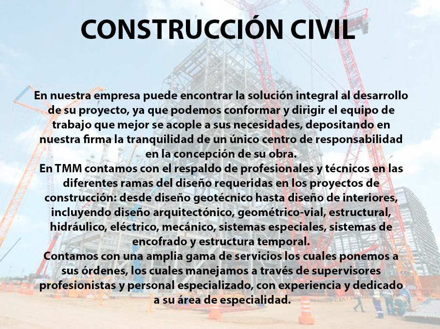 Nuestro prestigio está avalado por una amplia experiencia en diseño, ejecución de proyectos y obras a gran escala. Nuestro éxito está basado en las actividades y proyectos que se realizan donde, la innovación, el profesionalismo y la satisfacción de nuestros clientes son la principal característica que nos distingue.